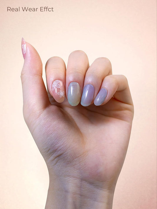 Pre Cured Gel Nail Strips - 44PCS Salon Quality Gel Nail Stickers - Long Lasting Polish Wraps for Women no UV Light Needed Easy Apply& Remove (Dreamy Purple)