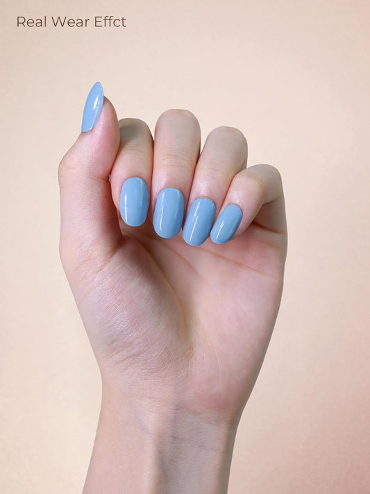 Pre Cured Gel Nail Strips - 44PCS Salon Quality Gel Nail Stickers - Long Lasting Polish Wraps for Women no UV Light Needed Easy Apply& Remove (Sorbet Blue)