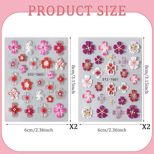 Flower Nail Art Stickers Decals, 4 Sheets 3D Self Adhesive Embossed Flower Nail Decals Nail Art Supplies Designs, Floral Nail Accessories for Women Girls