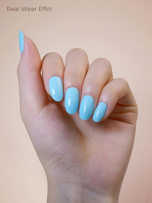 Pre Cured Gel Nail Strips - 44PCS Salon Quality Gel Nail Stickers - Long Lasting Polish Wraps for Women no UV Light Needed Easy Apply& Remove (Icy Blue)