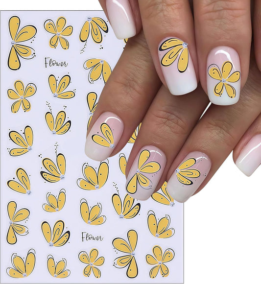Flower Nail Art Stickers 3D Self-Adhesive Spring Summer Floral Decals Wildflower Daisy Leaf Plant Spring Colorful Flower Nail Art Supplies for Women Girls Women Girls Manicure Decoration 8 Sheets