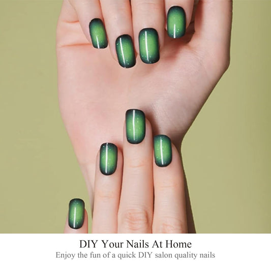 Pre Cured Gel Nail Strips - 44PCS Salon Quality Gel Nail Stickers - Long Lasting Polish Wraps for Women no UV Light Needed Easy Apply& Remove (Fairy Dust Green)