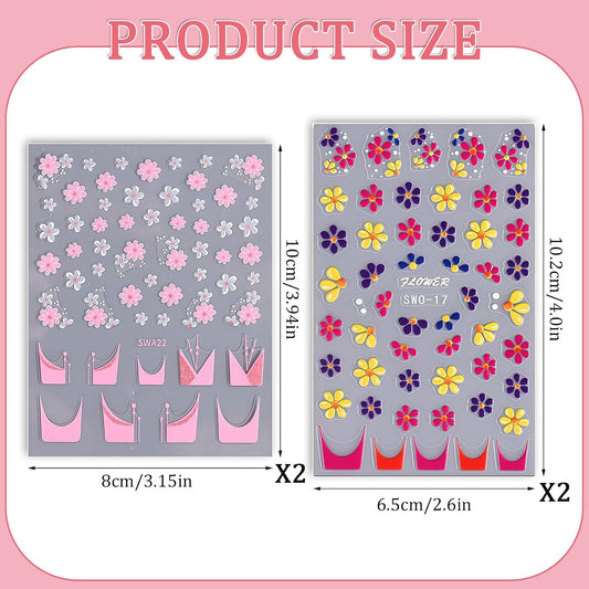 Flower Nail Art Stickers Decals, 4 Sheets 3D Self Adhesive Embossed Flower Nail Decals Nail Art Supplies Designs, Floral Nail Accessories for Women Girls
