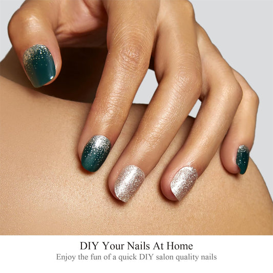 Pre Cured Gel Nail Strips - 44PCS Salon Quality Gel Nail Stickers - Long Lasting Polish Wraps for Women no UV Light Needed Easy Apply& Remove (Unicorn Magic Green)