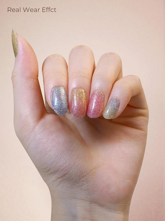 Pre Cured Gel Nail Strips - 44PCS Salon Quality Gel Nail Stickers - Long Lasting Polish Wraps for Women no UV Light Needed Easy Apply& Remove (Aurora Silver)