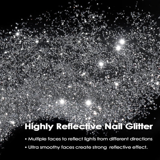 Allstarry Nail Glitter, 2 Colors Sparkling Silver Reflective Glitter Shiny White Diamond Dust Shimmery Sequins Crystal Gems for Nail Art Disco Party Nightclub Raves Festivals Concert Shows Wedding