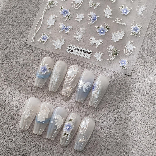 Flower Nail Stickers 5D Embossed Nail Art Stickers Decals Self-Adhesive Butterfly Floral Nail Supplies Spring Nail Art Design Decoration Accessories(1, Flower Butterfly)