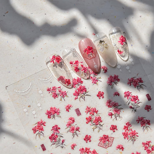 Spring Summer Nail Art Stickers 5D Self Adhesive Nail Decals Red Flower Nail Stickers for Nail Art Embossed Nails Design Floral Nails Supplies for DIY Manicure Decoration for Women Girls