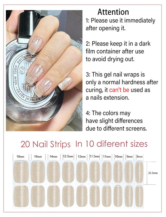 Semi Cured Gel Nail Strips, Nude Cat Eye P 20pcs Nail Sticker, Gel Wraps UV for Home Nails DIY