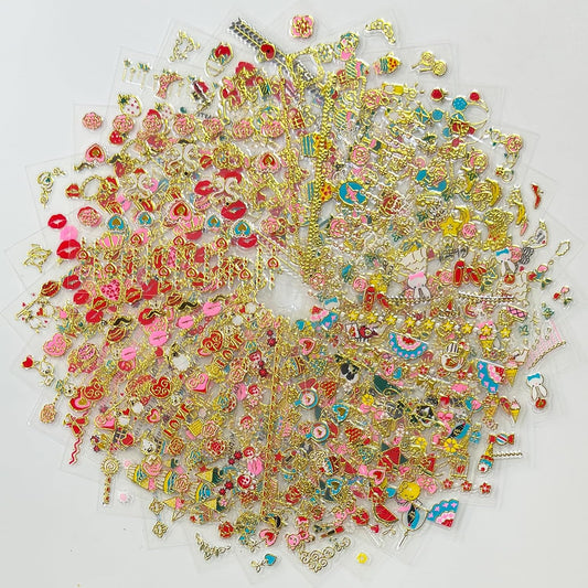 Valentines Day Nail Decals - 8 Sheets 3D Metallic Heart Charms Gold Silver Nail Art Stickers for Women DIY Manicure