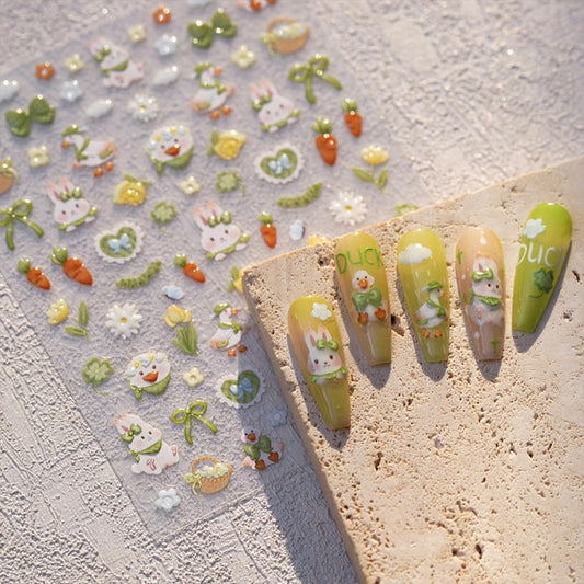 Easter Nail Stickers for Nail Art 5D Self Adhesive Nail Decals Cute Bunny Nail Art Stickers Green Bow Flower Nails Design Easter Nail Supplies for DIY Manicure Decoration for Women Girls