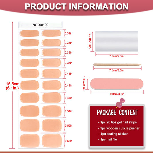 WOKOTO 20 Pcs Chrome Peach Pink Semi Cured Gel Nail Strips with Nail File & Wooden Stick Holographic Nail Gel Strips UV Light Gel Nail Stickers Full Nail Wraps Stick On Nails Color Strips for Women