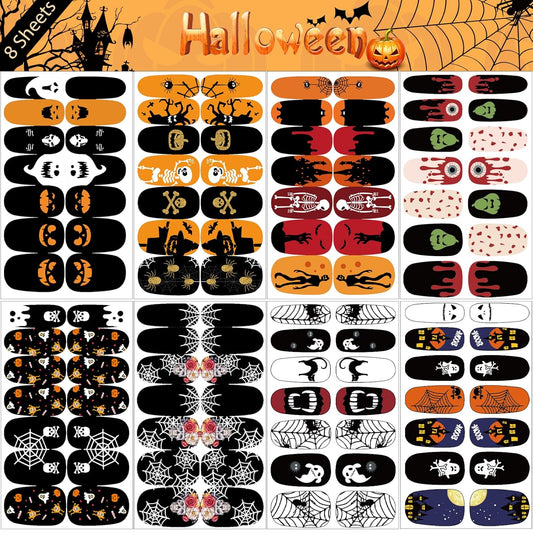 16 Sheets Holiday Nail Wraps Stickers, Halloween&Thanksgiving Day All Seasonal Full Nail Polish Strips, DIY Self-Adhesive Fall Winter Nail Art Decals with 2 Piece Nail Files for Party Decor (224 Pcs)
