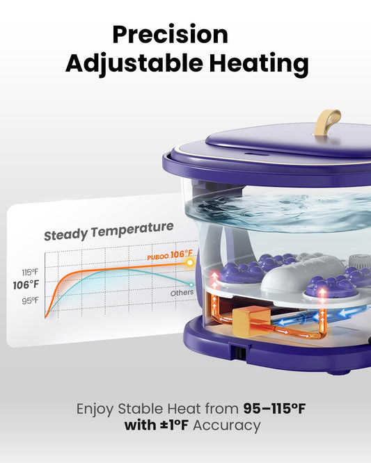 Puboo Electric Foot Bath Massager with Remote, 16 Motorized Massage Balls for Stress Relief, Collapsible Foot Spa Bath Massager with Heat, Pedicure Spa Tub with Temp Control, Purple