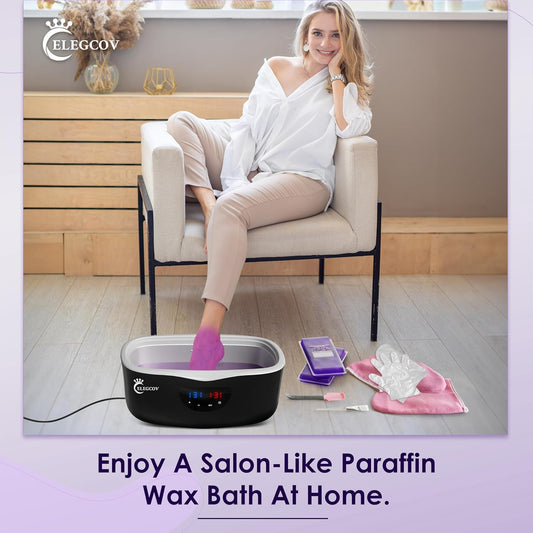 Paraffin Wax Machine for Hand and Feet - ELEGCOV Paraffin Wax Warmer with 8 Packs Lavender Bath Wax Refills Kit,Hand and Foot Moisturizing Care Kit, 4000ml Fast Meltdown Parafin Hot Wax Machine
