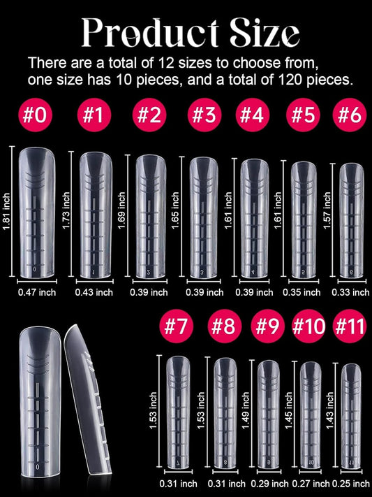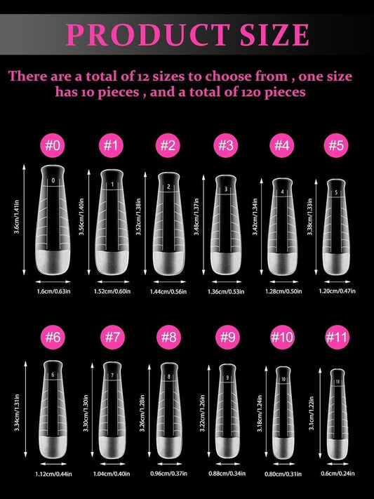 EBANKU 120Pcs Matte Dual Nail Forms, Clear Poly Gel Nail Molds Square Full Cover Coffin Nail Tips Extension Forms 12 Sizes for Gel Manicure Nail Art Design Salon&DIY