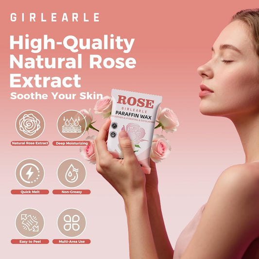 Paraffin Wax Kit - 10 Packs Rose Scent Refills with Silicone Brush - Non-Greasy, Easy-Peeling Wax for Hands & Feet, Skin Moisturizing