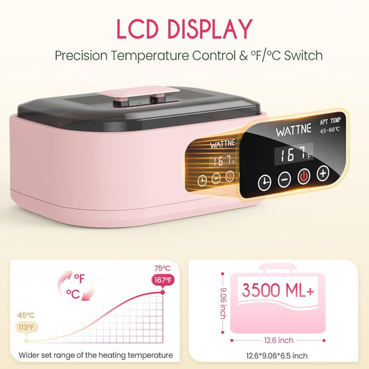 Wattne Paraffin Wax Machine for Hands & Feet – Paraffin Wax Warmer Moisturizing Kit with Auto-Timer & Precision Temperature Control, Paraffin Wax Bath for Arthritis, Dry Skin Care, Home Spa-Pink