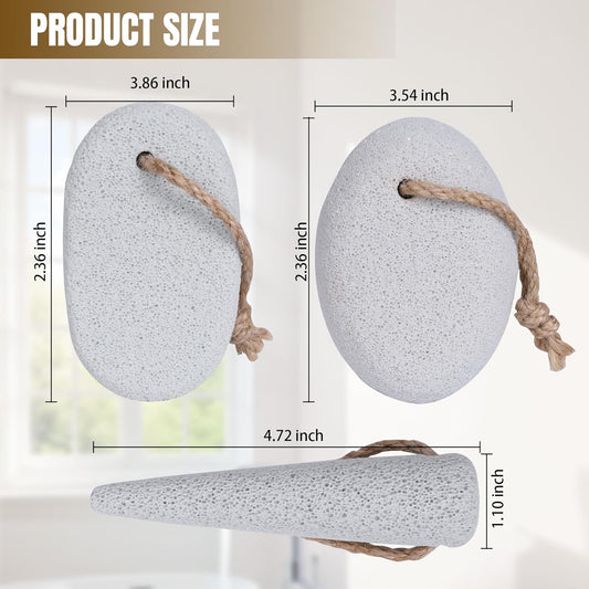 Pumice Stone for Feet Dead Skin Removal - 3-Pack Natural Volcanic Pumice Stone Set (Round, Oval, Cone) with Hanging Rope & Travel Box | Hard Skin & Callus Remover for Heels, Toes,