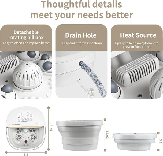 Collapasible Foot Spa Bath Massager with Heat, Pedicure Foot Spa with Bubbles and Jets/Timer/ Temperature Control, Feet Soak Tub for Home, Office, Relaxation and Stress Relief, Gift for Men and Women