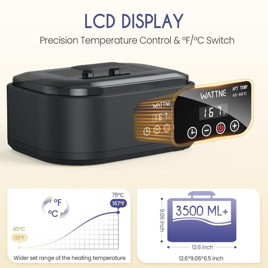 Wattne Paraffin Wax Machine for Hands & Feet – Paraffin Wax Warmer Moisturizing Kit with Auto-Timer & Precision Temperature Control, Paraffin Wax Bath for Arthritis, Dry Skin Care, Home Spa-Black