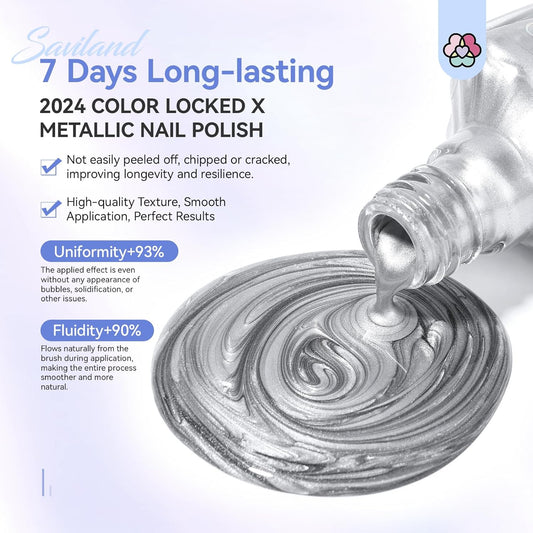 SAVILAND Silver Metallic Nail Polish: Chrome Nail Polish Air Quick Dry,10 ml Regular Fingernail Polish for Nail Art,Holographic Nail Art Polish for Finger Toe Manicure Nail Design Girls Home Salon