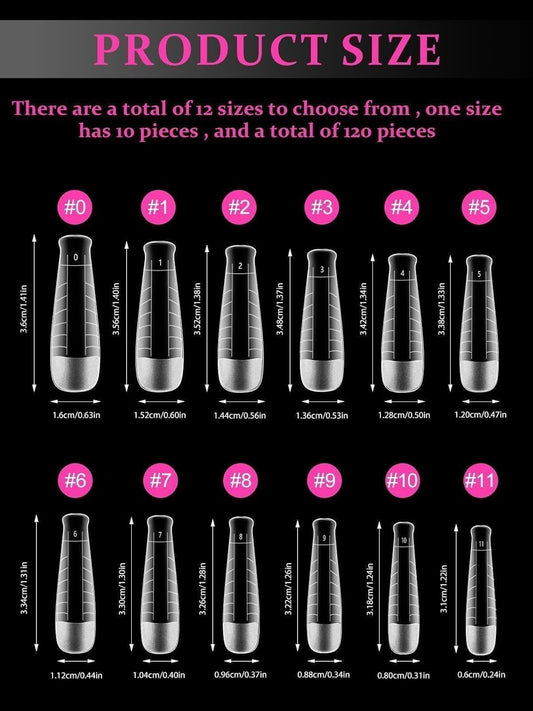 EBANKU 120Pcs Matte Dual Nail Forms, Poly Gel Nail Molds Square Clear Full Cover Coffin Nail Tips Extension Forms 12 Sizes for Gel Manicure Nail Art Design Salon&DIY