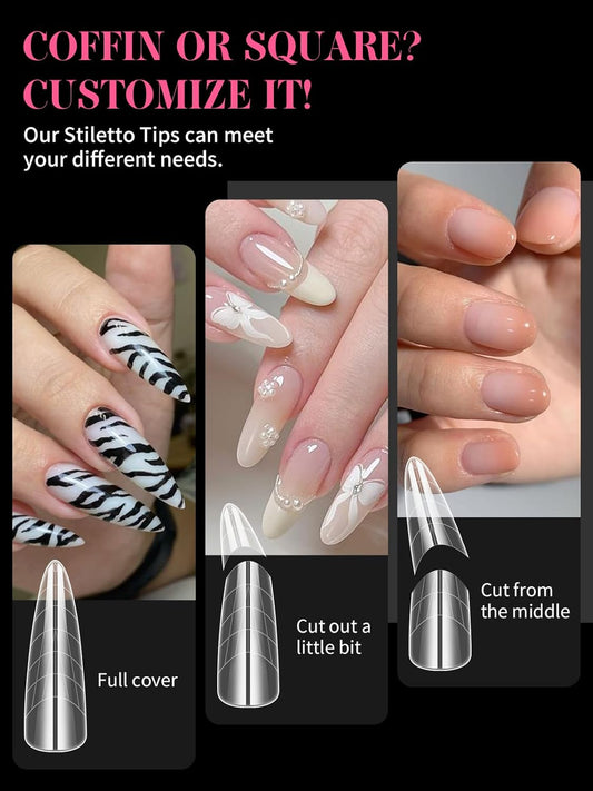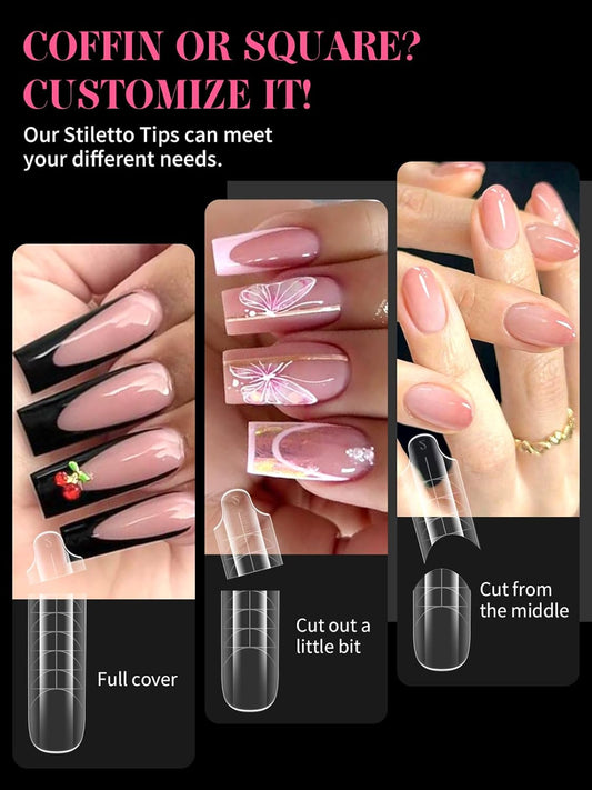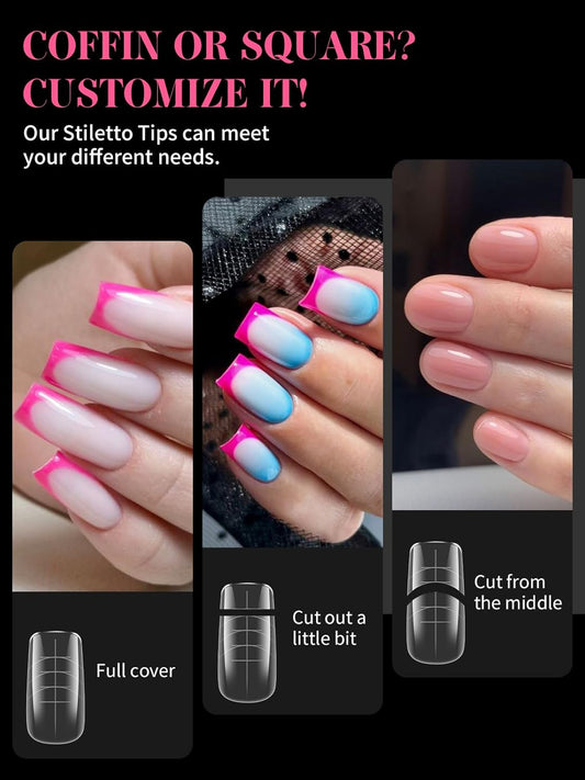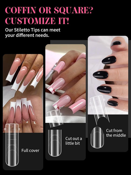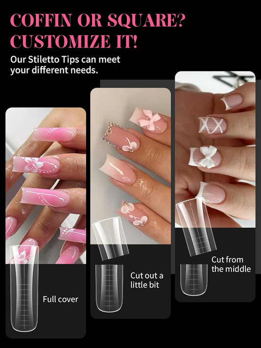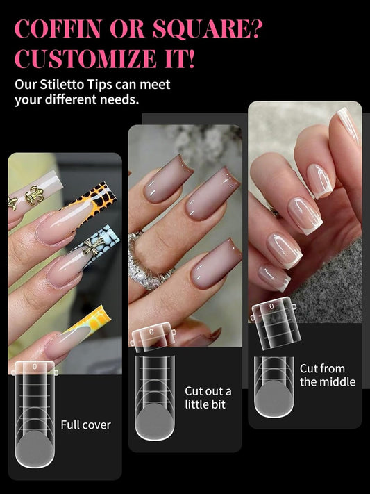 EBANKU 288Pcs Matte Dual Nail Forms, Clear Poly Gel Nail Molds Square Full Cover Coffin Nail Tips Extension Forms for Gel Manicure Nail Art Design Salon&DIY-12 Sizes