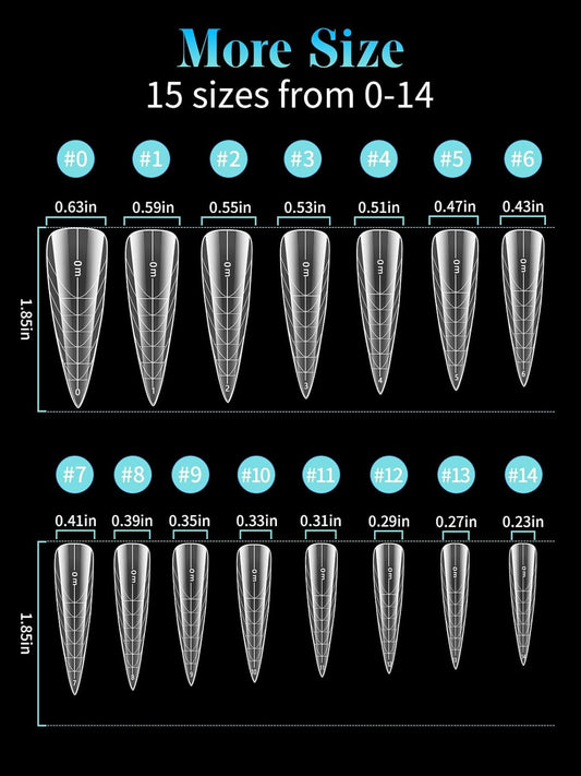 EBANKU Dual Nail Forms for Poly Extension Gel, 150 PCS Clear Coffin Nail Molds Reusable 15 Sizes Nail Extension Forms for Builder Gel Manicure Design Salon DIY