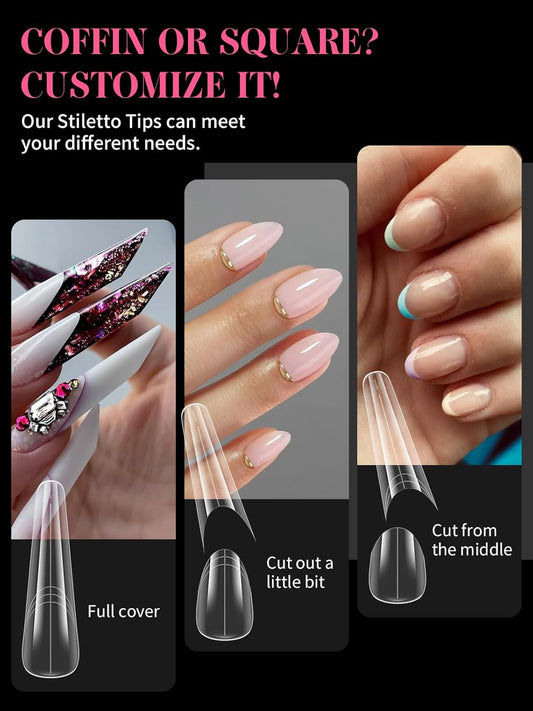 Guiding Line Nail Tips for Salon: Gelike EC Full Matte Coffin Gel Nail tips with Auxiliary Positioning Line - Nail Extension Tips for Professional -100 Pcs 10 Sizes