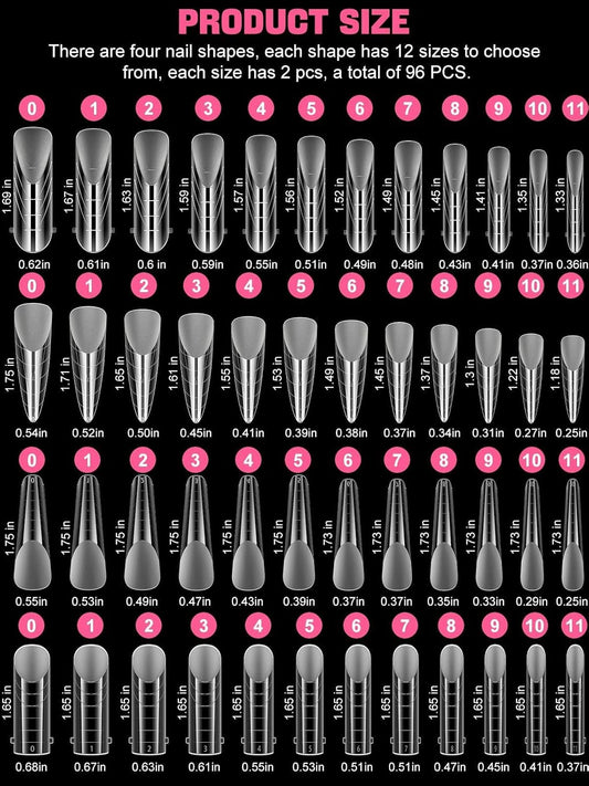 EBANKU Poly Gel Nail Forms 96PCS Clear Matte Dual Nail Forms Polygel Full Cover Nail Mold for Acrylic Nail Extension 12 Sizes 4 Styles Poly Gel Nail Art Salon Nails