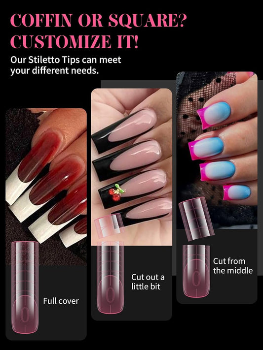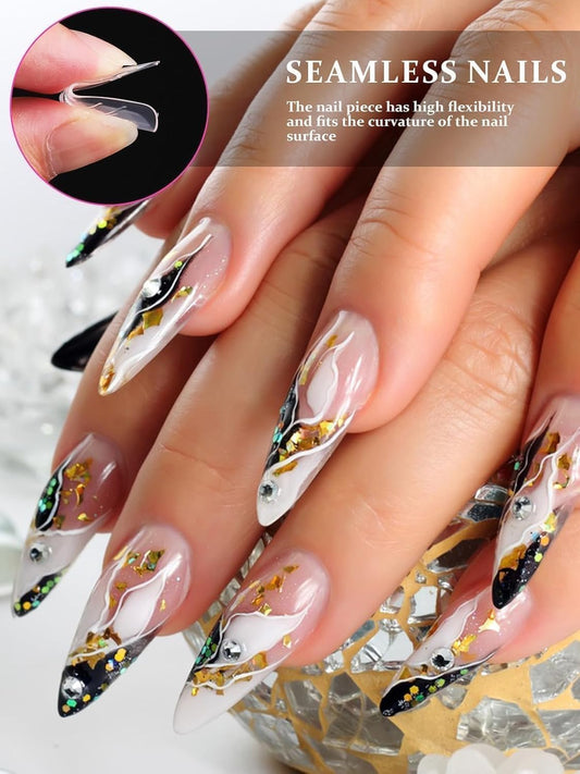 EBANKU 120Pcs Poly Gel Nail Forms, Long Stiletto Clear Dual Forms for Poly Extension Gel Structure Nail Tips Molds for Nail Art Design Salon&DIY