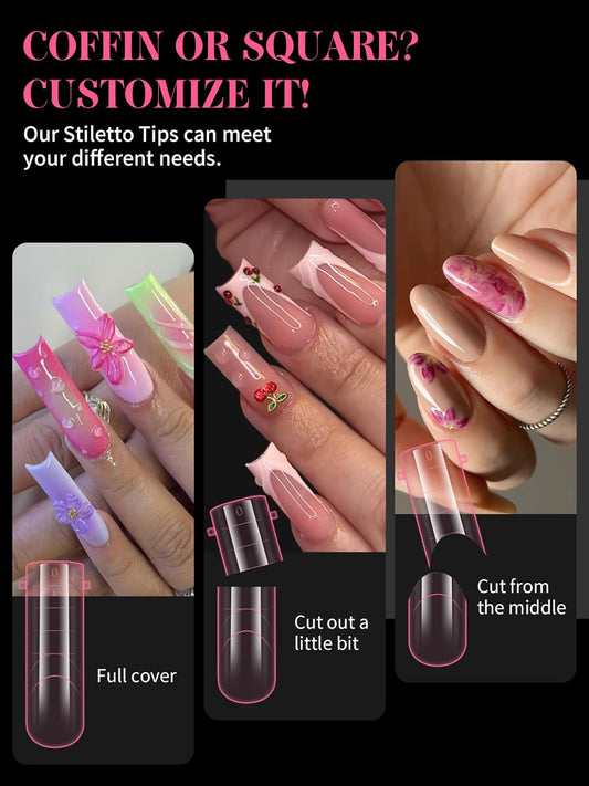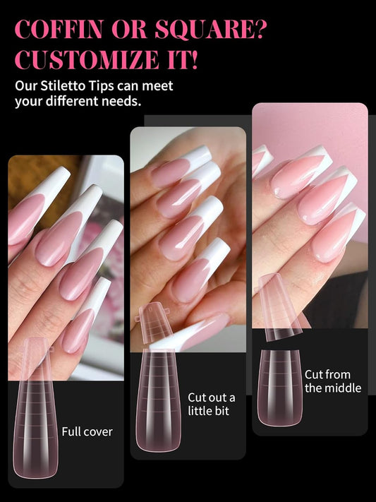 French Gel Nail Tips - Jofay Fashion French Tip Press on Nails, 10-Piece Set 320Pcs Pink long Square Nail Tips, No Need to File 3 in 1 Acrylic Fake Nails for Nail Art DIY & Nail Extension, 16 Sizes