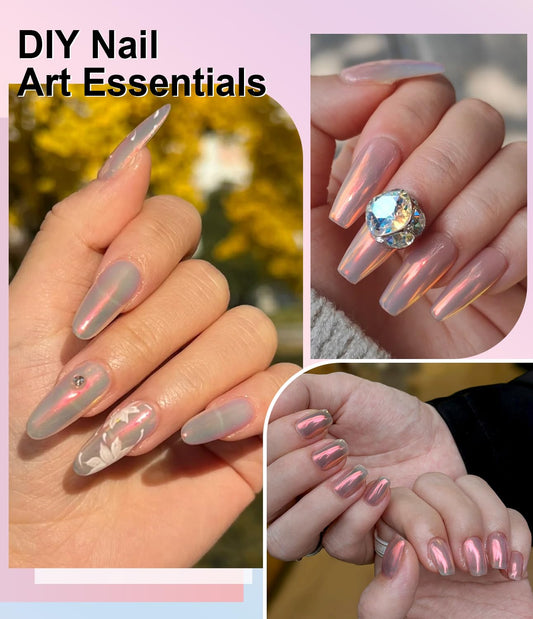 Artdone Chrome Nail Powder Metallic Mirror Effect Pigment Chrome Iridescent Aurora Nail Glitter Mermaid Pearl Glitter Dust Kit for Gel Polish Nail Art Decoration, Resin Craft