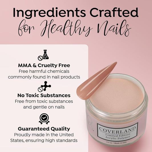 Tones Coverland Acrylic Nail Powder "Coquito" - Limited Edition Acrylic Powder for Nail Design, Sculpting, and Masking Nail Bed Imperfections - (1.5 Oz)