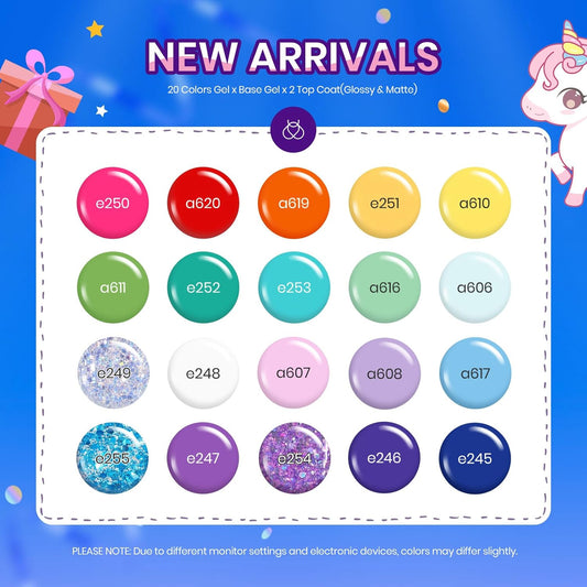 Beetles Halloween Gel Nail Polish Set, 24 Pcs Purple Blue Hot Red Gel Nail Polish Green Glitter Gel Polish Unicorn Collection Soak off UV with Glossy & Matte Top Base Gift for Women