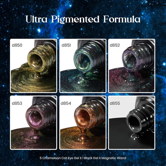 Beetles Cat Eye Gel Nail Polish Set - 6 Colors Halloween Chameleon Cat Eye Black Glitter Red Blue Gold Green Orange Gel Polish with Magnet Soak Off UV Velvet Gel Salon French Nail Art Gift for Women