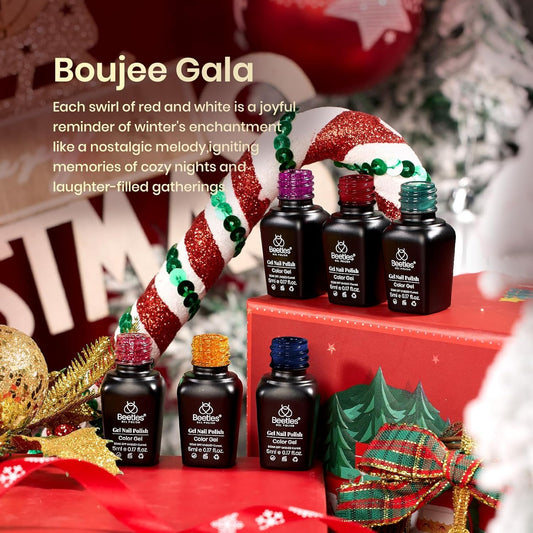 Beetles Fall Gel Nail Polish Kit, 6 Colors Gold Green Burgundy Red Glitter Gel Polish Soak Off Uv Nail Lamp Cured Holiday Nail Gel DIY Home Manicure Kit Gifts for Women Girls