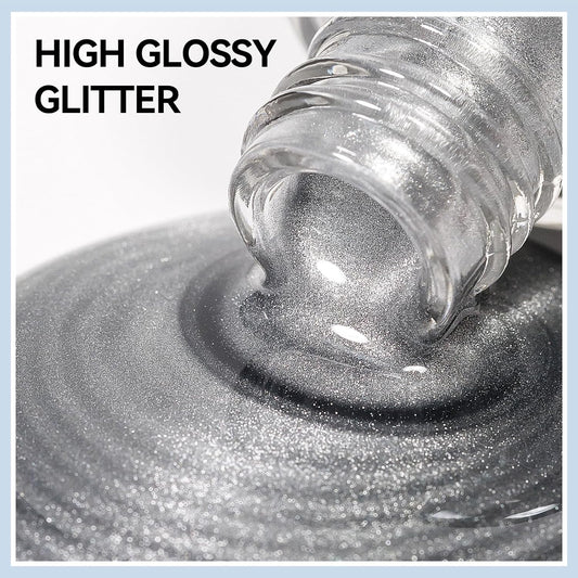 AILLSA Cat Eye Gel Nail Polish Nude Glitter Crystal Polish with Magnet, Jelly Glass Holographic Nail Polish Pearl Shimmer Reflective Translucent Color U V Gel Salon DIY at Home 0.5 OZ GF30