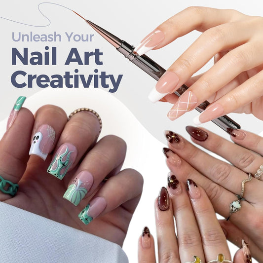 Nail Art Liner Brushes Set, 6Pcs Nail Art Design Brush Striping Thin Long Lines Dotting Drawing Pen, UV Gel Polish Painting Metal Handle Striper Brushes Size 5/7/9/11/20/25mm