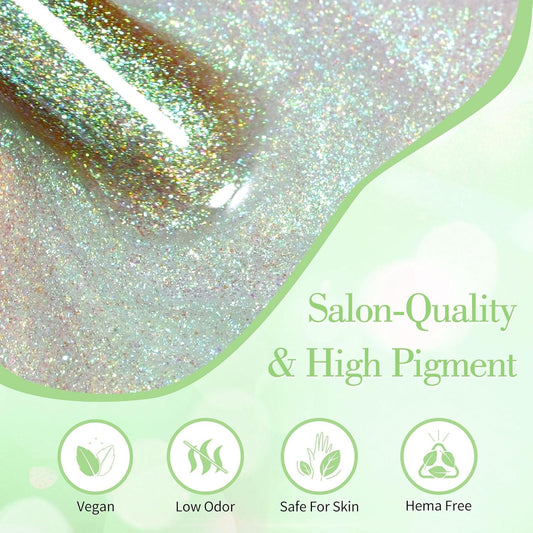 CANNI 1 Pcs Glitter Green Gel Nail Polish, Shimmer Sparkly Light Green Colors Gel Polish Soak Off Led Nail Art Gel Manicure Salon DIY