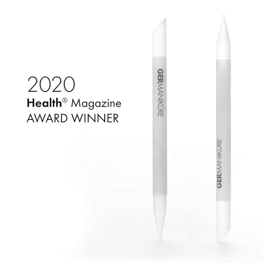 GERMANIKURE 4pc Mini Professional Manicure Set in Suede Case - FINOX Stainless Steel Tools Made in Solingen Germany, Glass Nail Care Supplies Made in Czech Republic
