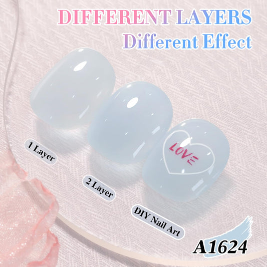 Double Rhythm 0.50 OZ Translucent Gel Polish Same Color Same Bottle Sheer Pastel Neutral Natural Milky 15 ML Jelly UV Nail Art DIY at Home (Blue-A1624)