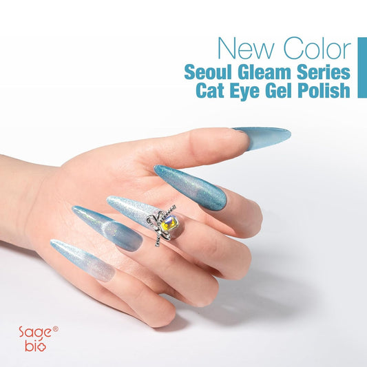 Imtiti Cyan Cat Eye Gel Nail Polish, Moonlight Aurora Cyan Holographic Cat Eyes Glitter Magnetic UV Soak Off Gel Polish with Magnetic Stick (0.34 Fl Oz-949)
