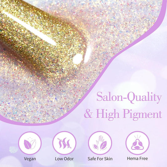 CANNI 1 Pcs Purple Glitter Gel Nail Polish, Shimmer Sparkly Light Purple Colors Gel Polish Soak Off Led Nail Art Gel Manicure Salon DIY
