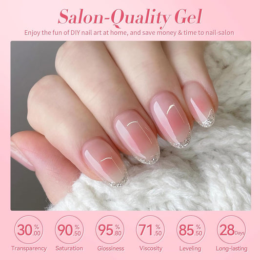 BORN PRETTY Jelly Gel Nail Polish Set,Sheer Nude Pink Natural Color Ice Transparent Tranlusent Gel Polish Kit for Salon Manicure and Nail Art DIY at Home 6PCS 7ml