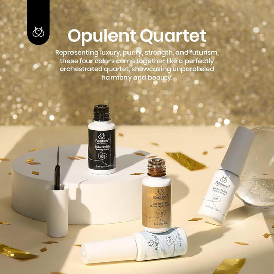 Beetles Gel Liner Nail Polish Set 10ml, 4 Pcs Nail Art Liner Gold Glitter Silver Black White Gel Polish Kit, 3D Mirror Gel Painted Glossy Swirl French Chrome Effect Nail Design Gift for Women