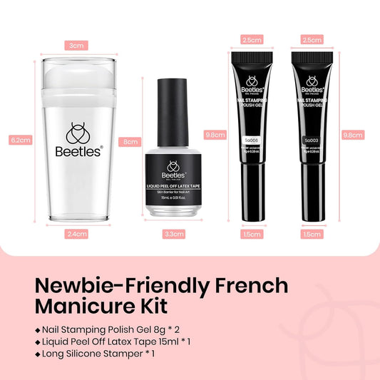 Beetles French Tip Tool: Stamp Gel Silicone Nail Stamp Kit with Long Silicone Stamper, Peel off Cuticle Guard and Nail Stamper Gel Polish, Soak off Uv Led Lamp Manicure Gifts for Women