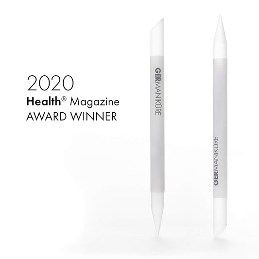 GERMANIKURE 4pc Mini Professional Manicure Set in Suede Case - FINOX Stainless Steel Tools Made in Solingen Germany, Glass Nail Care Supplies Made in Czech Republic
