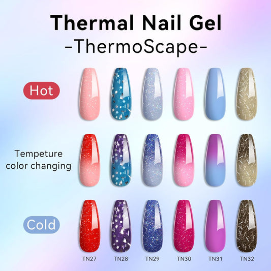 Born Pretty Color Changing Gel Nail Polish, 6 Colors Glitter Temperature Change Gel Polish Red Hot Pink Blue Long Lasting Nail Polish U V Set for Manicure and Nail Art, DIY at Home, Salon-Quality 7ml